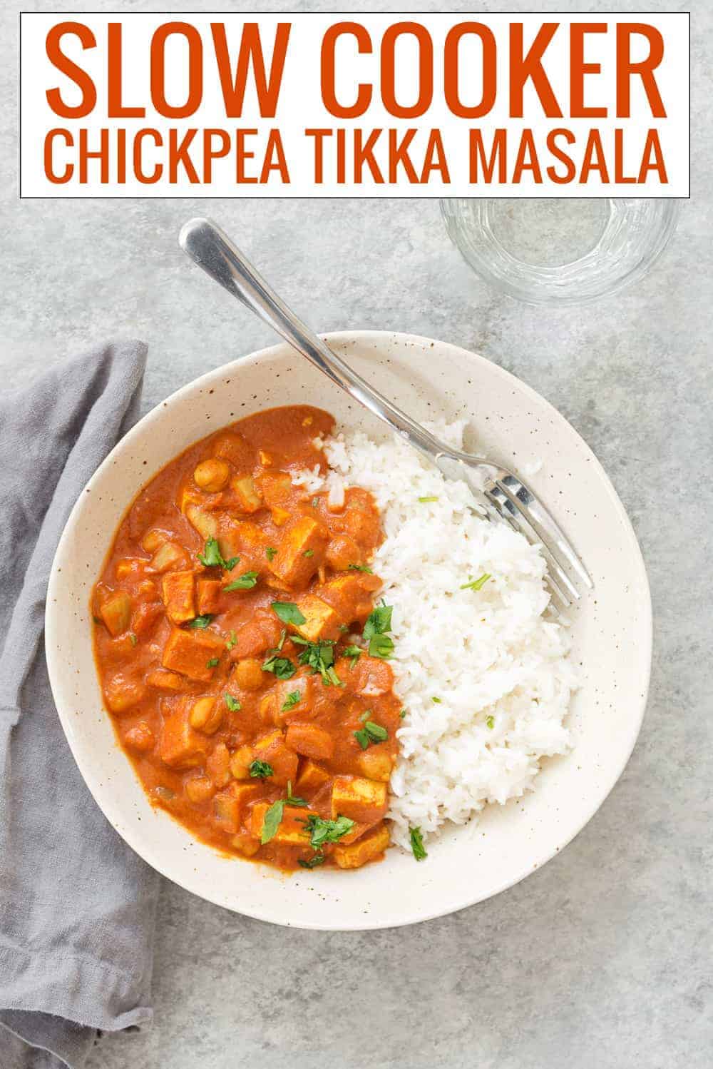 Slow Cooker Vegan Tikka Masala! This slow cooker meal is SO good and perfect for healthy weeknight dinners. If you love Indian food, then you'll love this simple chickpea tikka masala.
